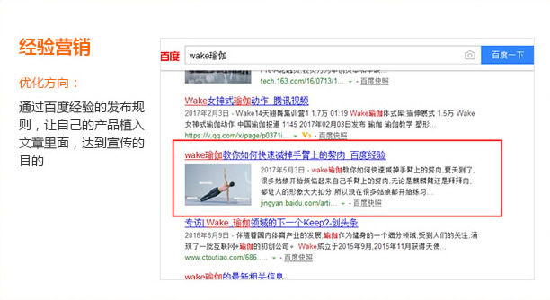用户搜索关键词时候,经验专区出现相关内容